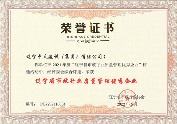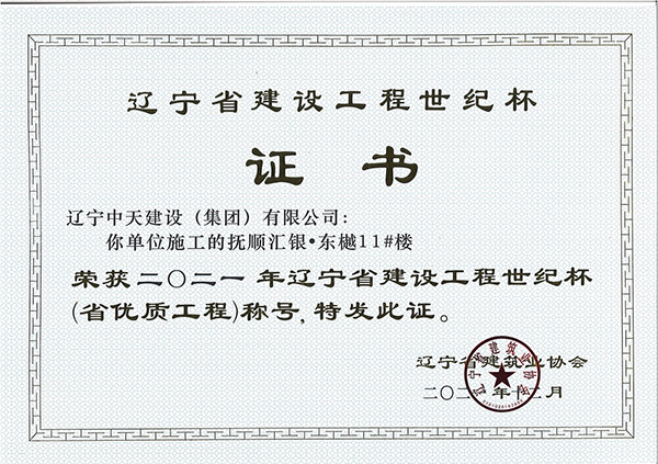 企業(yè)先后榮獲“全國(guó)優(yōu)秀施工企業(yè)”、 “中國(guó)AAA級(jí)信用企業(yè)”、“全國(guó)保障性安居工程建設(shè)勞動(dòng)競(jìng)賽先進(jìn)單位”、“遼寧省最受尊敬企業(yè)”、“遼寧省優(yōu)秀建筑業(yè)企業(yè)”、“遼寧省工程建設(shè)質(zhì)量管理優(yōu)秀企業(yè)”、 “遼寧省守合同、重信用企業(yè)”、遼寧省“AAA級(jí)信用企業(yè)”、 “撫順市安全生產(chǎn)先進(jìn)單位、紅旗單位”、“撫順市安康杯競(jìng)賽先進(jìn)集體”等多項(xiàng)殊榮。
